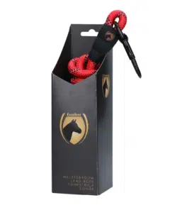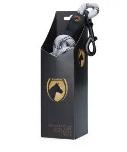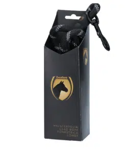 The Excellent Horse lead rope Exclusive Reflective can be combined with all Excellent Horse halters and is available in 5 different colours. Reflective details are incorporated into the lead rope, and the material used—strong polyester—is also favored by mountaineers. The attachment of the lead rope consists of a 360 degrees rotatable musketon hook (black) with a nice rubber finish. The lead rope has a length of 2 metres.