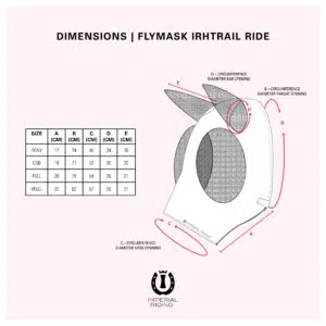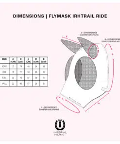 Imperial Riding Fly mask Trail Ride offers a snug, comfortable fit with breathable mesh panels over the eyes and ears, ensuring airflow and visibility while protecting your horse from flies and irritation on sensitive areas.