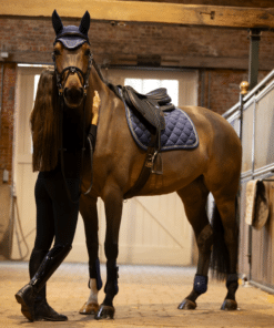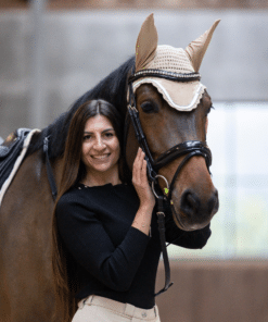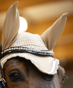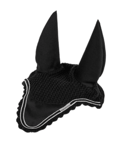 The Lami-Cell Fly Veil Venus uses lightweight and breathable fabric. It protects the horse’s ears from flying insects while ensuring comfort during rides. The stretch fabric ears provide a comfortable fit and suit all head sizes. A black-and-white braid and a metal plate with the Lami-Cell logo add a touch of elegance.