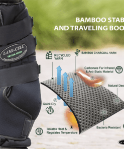 Lami-Cell Stable/Transport Boots Bamboo feature an inside pad with woven Bamboo Charcoal. This design creates a healthy environment by absorbing moisture and regulating temperature. Charcoal fabric absorbs and spreads sweat quickly, keeping the horse dry and fresh, even overnight.