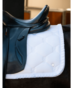 PS of Sweden Saddle Pad Dressage Ruffle is an anatomically shaped saddle pad with a ruffle binding and the iconic PS quote along the spine. Our saddle pads have extra space at the whithers, and our unique stop-cushions that keep the saddle pad in place under the saddle. Underside is Quick-Dry material that transports moisture and the surface is dirt-repellent.