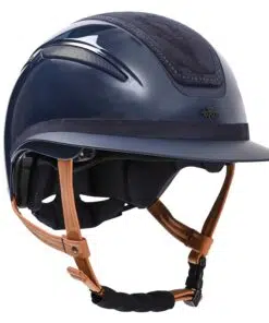 HV Polo Riding Helmet Magnifica is a stylish women’s suede riding helmet with MIPS, rhinestones, and a polo visor for elegant protection.