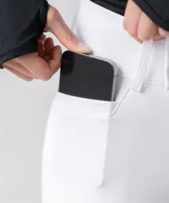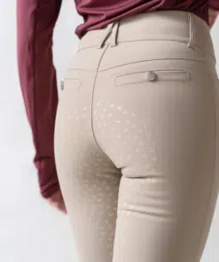 Pomme Nellie Classic knee grip Breeches are custom-made from a soft and stretchy fabric. The sturdy seat grip, with silicone letters is giving you confidence with every ride.