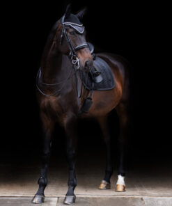 The Imperial Riding Dressage Saddlepad Shadow – a luxurious velvet quilted saddlepad designed for performance and elegance.